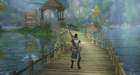 金山凭借自己的研发实力,完全自主研发,获得国家863计划支持的图形3D引擎,经过不断的完善3D引擎的功能和效果,《剑网3》的即时演算效果已经达到了电影水准。从游戏截图可以看到,草地树木岩石的细节表现、林间的光影效果、水面的动态引擎技术,都已经达到了国内网游的顶级水准。