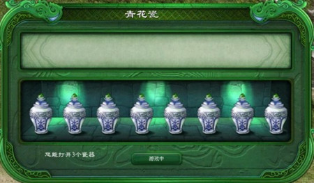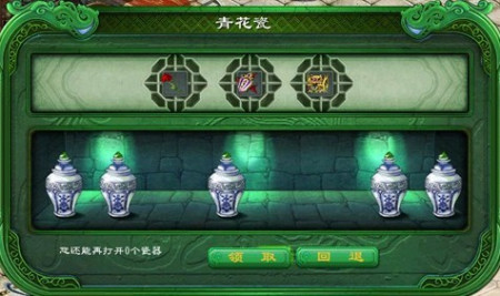 玩家可任意选择打开“青花瓷罐子”,每打开1个,“罐子”上显示物品即归您所有,每局最多打开3个。