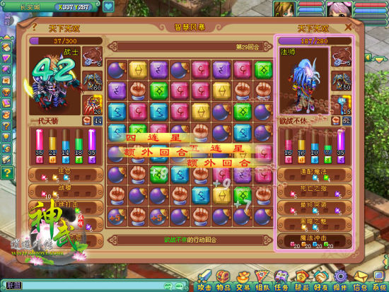 《神武》智慧风暴,在结合了“对对碰”和“宝石迷阵”等传统玩法的基础上,融入了包括法师、术士、刺客、战士、阴阳五种职业在内的特殊玩法,消除宝石获取魔法,通过使用魔法技能和排列炸弹,耗尽敌人的血量,赢取胜利,还能拿到特殊的成就,玩法简单,操作难度几乎为零,但是小小的棋盘上却蕴含了无限玄机,这是智慧的比拼,这是策略的较量,你敢来试试么?