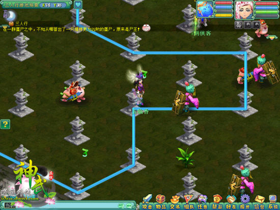 暑期热门活动“三人行”,画个圈圈消除生物,赢取积分夺胜利。玩法简单,站在场地的“灯柱”旁,按键画出随机的封闭圈,消除圈内的生神武就能有积分。碰到白无常,还可以跟他玩猜拳。上手简单,画面诙谐,玩策略也讲人品。不动刀枪打僵尸,带妹子画圈圈,轻松拿经验。多多参与热门活动,飞速升级很惬意!