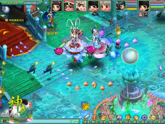 《神武》暑期热门活动“捕鱼达人”欢乐开启,操作简单,奖励丰富,最重要的是,色彩斑斓的海底最适合带萌妹子一起畅游了。捕鱼的操作十分简单,按F1键切换渔网大小,点击鼠标右键就可以完成捕鱼,带妹子,就要玩点简单又有趣的。想拿高分,也是有技巧的,关键在于地形、渔网的选择和出手时机的把握。盯紧大鱼,不放小鱼,适时运用道具,成为捕鱼达人,经验宝物轻松拿!