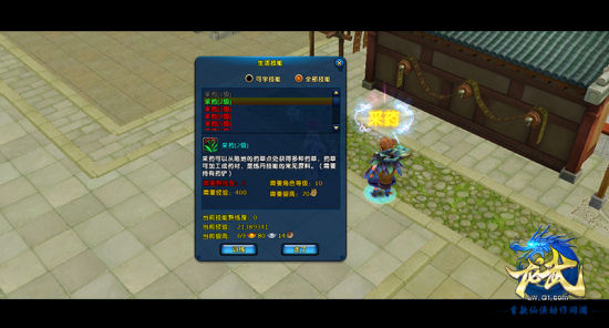 在《龙武》里,所有玩家只要在杂货商处买到药铲,便可以采药。不过,最初,玩家只能挖采最低级的药材。当玩家采药的技能熟练度槽变满时,可去长安生活技能区找采药导师学习下一级采药技能。采药可以获得各种药草,采药等级越高可以获得药草等级越高,拿上药铲去野外碰碰运气吧,说不定会挖出千年人参哦。获得药草后,可以使用我们即将介绍的炼丹技能来炼成药品,以备不时之需。