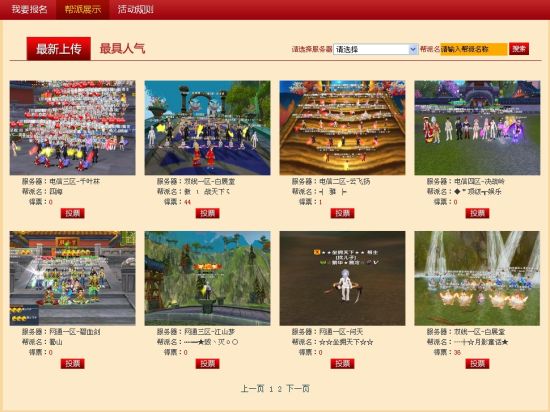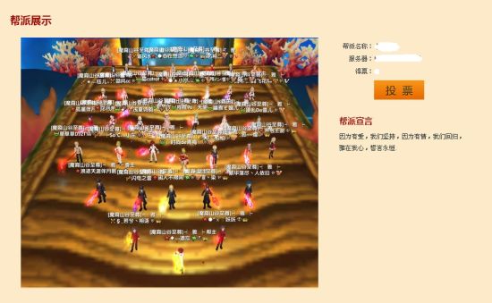 我们的大家庭截止到目前为止,已经有十多个帮派参与活动了,每个帮派都有自己的特色,家族成员壮大,美女帅哥云集非常壮观呢,大家在一起谈天说起杀敌打怪,共同为帮派的成长做贡献,一点也不会觉得孤单!还没有来参与的帮派大家庭快快行动起来吧!温馨提示,《武林外传·小六巡夜》帮派评选活动投票积分需要参加“马上有积分”活动才可以获得哦!http://event20.wanmei.com/wulin2/rechargerank/wish.action