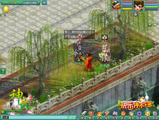 突破常规:《神武》独创了具有自主调控功能的经济系统,让你自给自足,更推出帮派学徒系统替代传统的师徒系统,一个新人有N个师傅,轻松娱乐轻松玩!