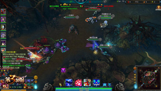游戏截图《第三把剑》的8V8特兰西瓦战场是冒险模式下最具特色一个多人竞技玩法,获胜条件为摧毁敌方大本营,基础设定(小兵仇恨、防御塔仇恨、经验机制)和英雄设定(英雄属性、英雄技能、装备物品、技能释放)。游戏模式采用了经典的匹配机制,人数增加到每个阵营共8位玩家且不能使用同一英雄。