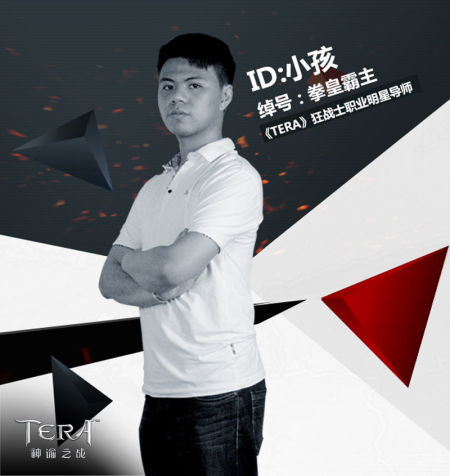 导语:世界级MMO《TERA》8月6日正式开启开放性测试,将迎来不删档不限号的全种族全职业最新版本。自邀请到若风、小楼、NEWBEE战队小8三位大神级职业电竞选手为《TERA》职业代言后,第四位职业导师今日也浮出水面,著名格斗游戏玩家同时蝉联多项赛事冠军的玩家“小孩”应邀成为《TERA》第四位职业导师。