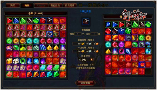 右键点击物品图标,可将其放入出售栏,并设定出售价格和时间,不同Vip等级可寄售的拍卖品数量不同。