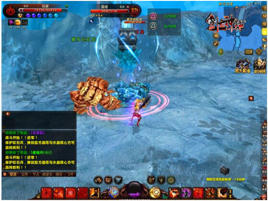 玩法介绍:二十名玩家随机分配为两个阵营,互相对抗。可直接攻克敌方水晶核心获得胜利,也可以通过击杀敌对玩家、摧毁地方防御塔获得积分,积分到达1000时获得胜利。(不限次数,每天首次获胜可获得战场勋章,可在西岐城的上官耀廷处兑换到各种珍稀物品与高级装备。