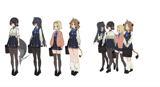 这是阿兔在美术团队提供的思路,在创作角色时,会考虑当多个角色排成一排时,整体的视觉效果会如何……换句话说,就是更加注重剪影的张力,想办法拉开角色与角色之一的差异。首先关注的是角色在阵营中排成一排时的轮廓,然后再在此基础上调整细节。