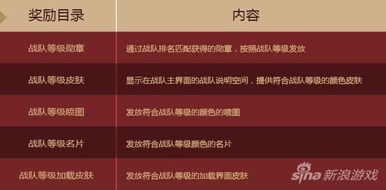 在赛季结束时,根据战队代表小队的成绩会发放以下对应的奖励。