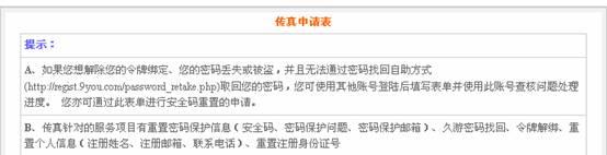 方法一:通过客服提供的传真服务。地址:kefu.9you.com/password_back.php?viewid=1