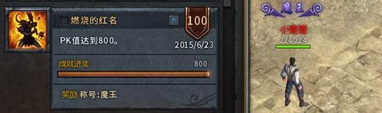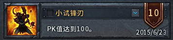 玩家在游戏内与PK相关的成就。如PK值达到100,可获得成就“小试锋刃”。