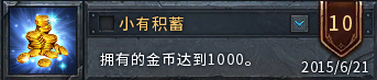 玩家在游戏内资源收集方面的成就。如拥有1000金币,就可以获得成就“小有积蓄”。