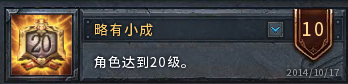人物角色成长方面的成就,如等级升到20级,可获得成就“略有小成”