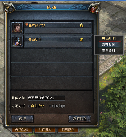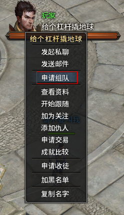 1)鼠标选中对方头像,右击,在弹出的选项中选择“邀请组队”。对方在收到系统提醒通过申请后,就成功加入队伍了。