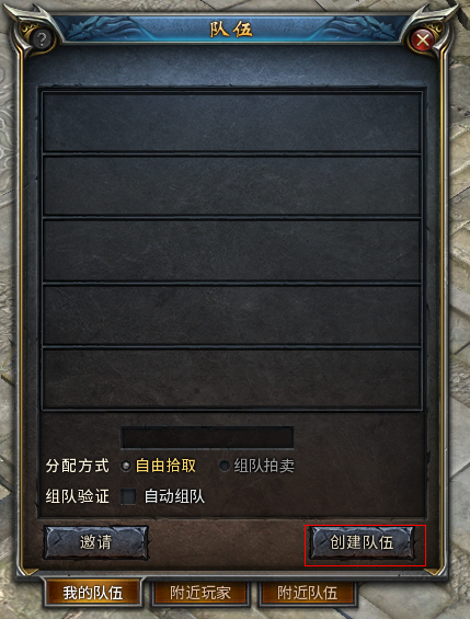 1、点击组队界面下方“创建队伍”按钮,就可快速创建一个队伍。