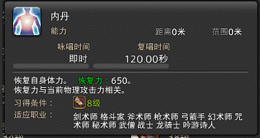 点评:这个技能龙骑士使用时只有5%的治疗效果,武僧使用则高达20%!这个技能对于龙骑士来说尴尬之处是你必须把武僧练到42级才能获得,但5%确实也是很不错的团队效果了。
