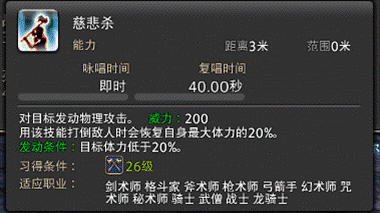 点评:一个斩杀技能。缺点是你需要练到把这个职业在多练11级。除此之外没有缺点。