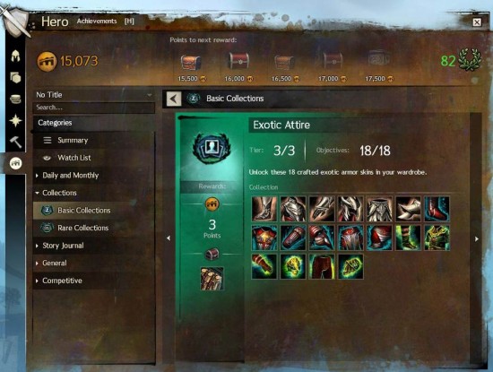 物品收集是一项新颖而又独特的成就奖励,它来自于玩家去收集物品与皮肤。在这个新的收集成就中,玩家们会发现少数的新成就。它们一开始看起来并不多,但随着玩家们探索这个世界的同时大量隐藏的收集项将会被解锁。