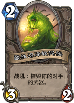 现在这张卡牌就显得简单直接了。像PHONETAP这样的玩家(最近赢得了ESL赛季决赛),都在德鲁伊牌组中加入了酸性沼泽软泥怪,以便在对阵奴隶战和中速猎这样稍微逆风的对局中打得稍微轻松一点。