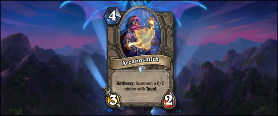 如果你认为橱柜蜘蛛的随从交换能力很差,不用担心,还有场面交换更差的随从,那就是奥能铁匠。它能让对手白白吃掉,这种情况即便上一个0/5嘲讽也无济于事。持盾卫士(1-0/4)最起码费用低,但即便有4血,它也没有任何竞争力。