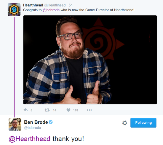 Ben Brode一开始加入炉石团队是帮助现在的游戏主管Eric Dodds开发炉石,如今他将从首席设计师的角色变成游戏总监。