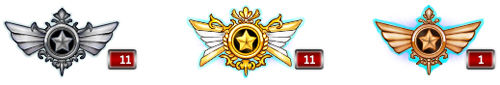 2、徽章分为3种:青铜徽章、白银徽章、黄金徽章3种。而红色框内的数字,则表示玩家拥有但是尚未镶嵌的徽章数量。