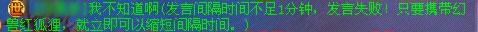 如果间隔时间未到就在“世界”聊天频道发言,信息将无法发出,你将会收到系统提示哦!