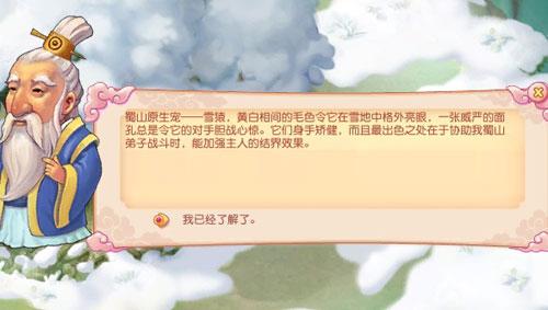 2、回到门派后,通过自动寻路系统找到后山守护使(蜀山118,29)。找到后山守护使后,先了解下蜀山原生宠吧。