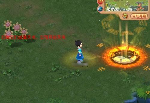 在第四处迷宫死角处你见到一个蓝衣道童,道童蓝灯养了一只小蓝凤,但近日小蓝凤悻悻无神,蓝灯说你若能给他一棵幻化草医好小蓝凤,他就送你去金光洞。
