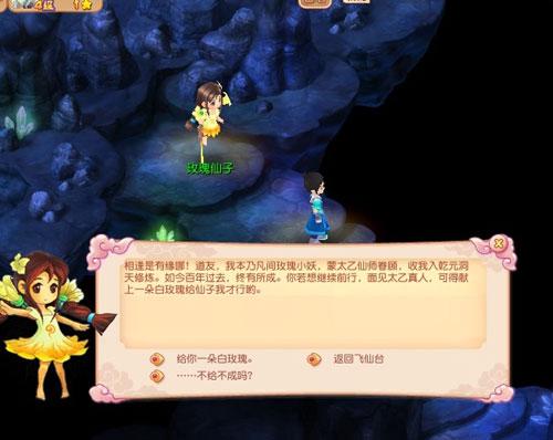 你循迷宫而行,在第一处死角处碰到玫瑰仙子,仙子乃山中修炼的花仙,若然你没有一朵白玫瑰赠予玫瑰仙子,那决计是不能前行的。