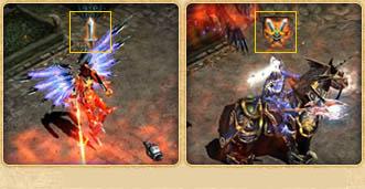 攻城方在头部出现刀、权杖、弓的图标,战盟盟主头上还会有皇冠标志。