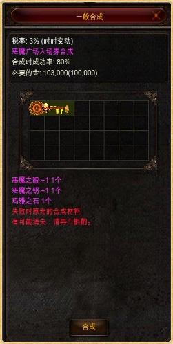 恶魔广场通行证的合成材料及需要金币: