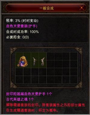 使用古代英雄之魂以及封印道具合成新套装时的成功率为100%
