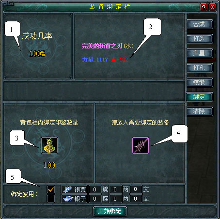 4.装备:玩家放入需要进行绑定的装备。支持右键以及拖拽操作。