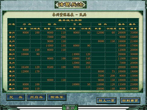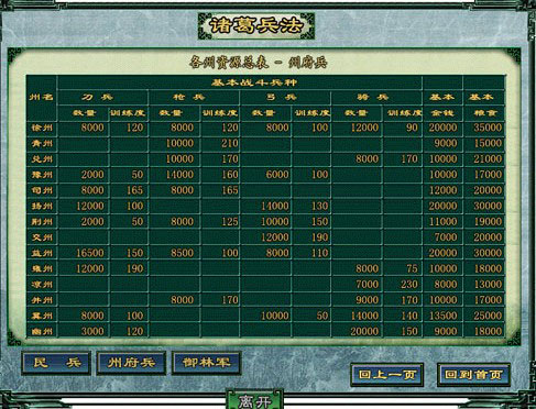 各州的兵种和钱粮资源是多少?