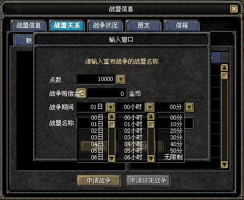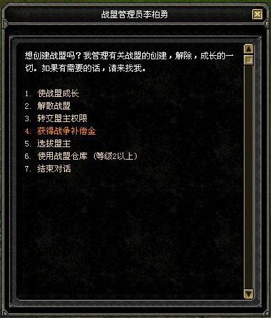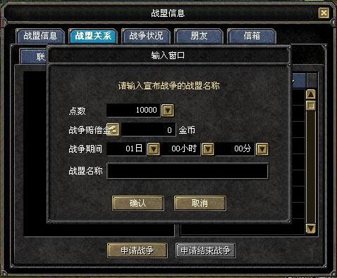 战争盟主申请战争时,可拿出物品栏的部分金币当作赔偿金。 |