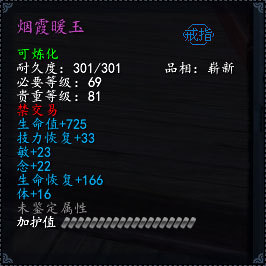 烟霞暖玉是67级可以佩戴的紫色饰品,附加敏、念、体属性,适合多个职业进行佩戴。
