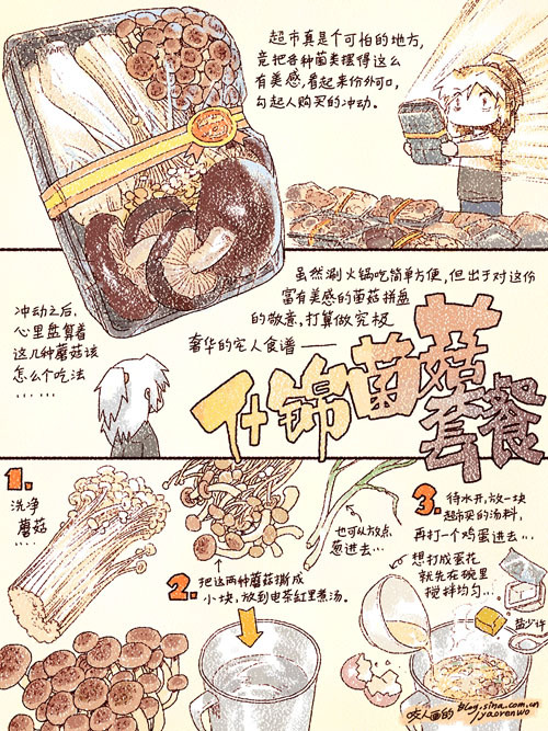 见到了各种蘑菇的组合包,蘑菇很不错,加之多种蘑菇摆在一起甚是美丽,