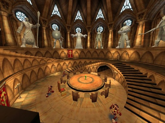 早期的血色修道院军械库,后来赫洛德站的位置放着一张巨大圆桌,一群食尸鬼无目的的游荡,感觉非常恐怖。
