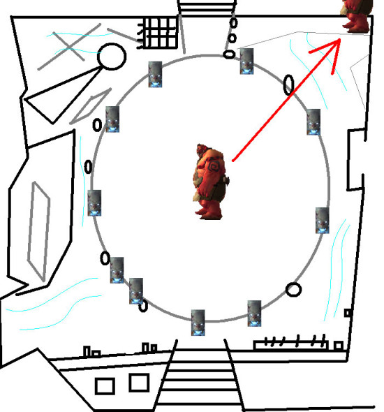此boss倒T后杀人一至两刀一个,在灭团后boss会在场地中央刷新,群活可行,此副本跑尸效率是较快的,有群活时最好还是救一下人,Boss的视野距离-----15码左右