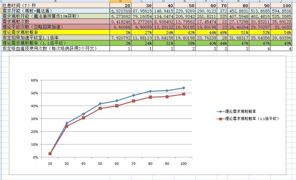 计算公式(其中T为假定喷吐时间,X为吸血瘟疫获取符文数量)
