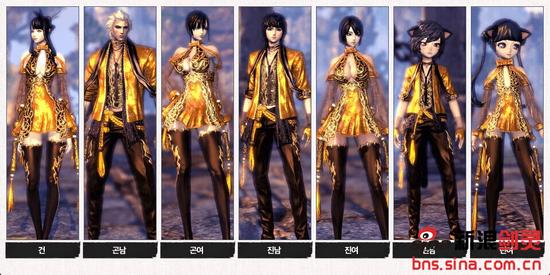 第二套时装,感觉是国服【不了情】时装的改色版,由喜庆的红色改为金色。虽然整体看来变身土豪,但是除了改色并没有增加新亮点。