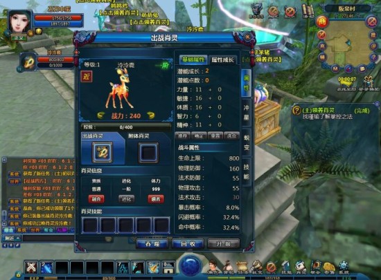 肖灵系统是游戏的一大特色。作为特色,所谓肖灵,其实就是具有灵气的生肖动物,其本质是个宠物系统,在玩法上与很多国产游戏没有太大区别。肖灵分为近功和远攻2种,带有相关属性,比如智力,精神,敏捷。力量,造型多为常见动物,比较萌,有蛇宝宝,兔子,小鸡,泠泠鹿和肥猪。玩家可以根据自己职业的需要和喜好选择适合自己的肖灵。既然是宠物,救主护身的技能是天生的,九鼎争霸里的不同肖灵技能几乎是一样的,比如第一个技能, 肖灵降世,不管什么职业,大家都有,而且释放出来的画面效果都是一样的,只是颜色不同而已。玩家打怪,肖灵出战也会获得经验,然后等级上升,自动领悟新的技能,在这个宠物界面,提供了宝宝炼化、冲星、蜕变等几种玩法。不过这既然作为一个特色,也应该是日后花钱的众玩家的花钱所在了。