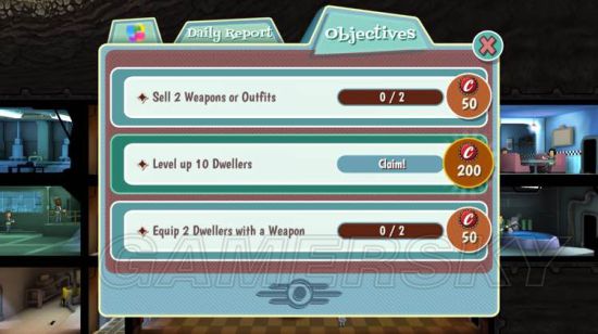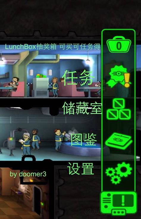 看到这里我相信大部分监督者都已经着手于人员调动和区域建设,但发现手头瓶盖数量不够。我来说说瓶盖的主要来源,没有接触过辐射系列的玩家可能不知道瓶盖是什么,瓶盖即核战后的通用货币,即核子可乐的瓶盖。在避难所里瓶盖的主要来源是:房间收集时有瓶盖,房间Rush成功后,人物升级,废土探险,做任务等。先讲讲做任务。