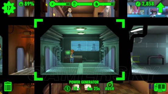 看见图中的Rush了吗?Rush可以立即产出改区域的产品,不过有几率失败,失败会导致辐射蟑螂出现或火灾,所以Rush前一定装备武器。