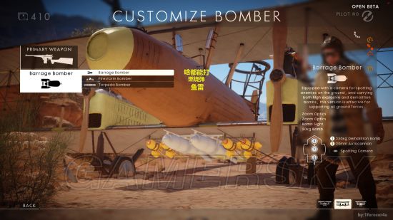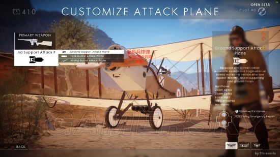 战斗机永远无法摆脱对地无力的命运。第一种默认装备仅仅是让你的机枪可以放大,但是你以及不能把它当狙用。第二种是火蛇,也许可以对地一波了?并不能,长cd足够你飞过地图两趟了。第三种可以投掷一列类似于轰炸机机头机枪的子弹,当然是投掷而并不是从你的机头射出,打到人看起来伤害很足但并不能杀人