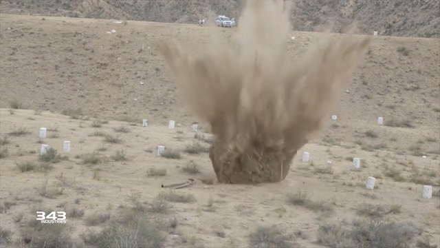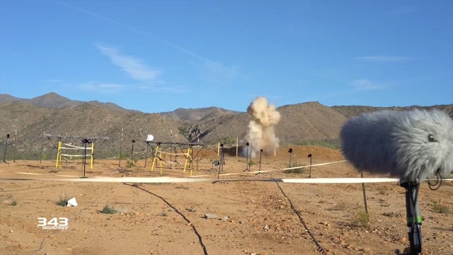 据悉,团队使用了工业级炸药ANFO和TNT去为《光环:无限》捕捉声音。他们把炸药埋在距离地面6英尺的桶中,桶被炸成碎片,留下巨大的烟流,桶的碎片被高高地射向天空,然后又坠落到地面。