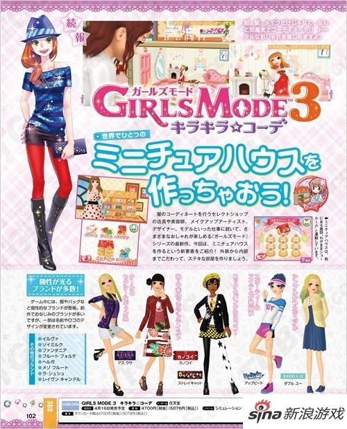 女生风格3:绚丽装扮游戏中,前作登场的一些著名服装品牌都会在本作中换装登场,并推出更多可爱潮流的服饰,如AzUSA、彼恋、StaryCat、UPBEAT、DoubleU等,新服装风格也是多种多样,包括冷酷性感的辣妹风格、中国少女风格、摇滚乐团然风格、运动少女风格、OL潮流女性风格,以及各种其他传统潮流的风格也会登场。