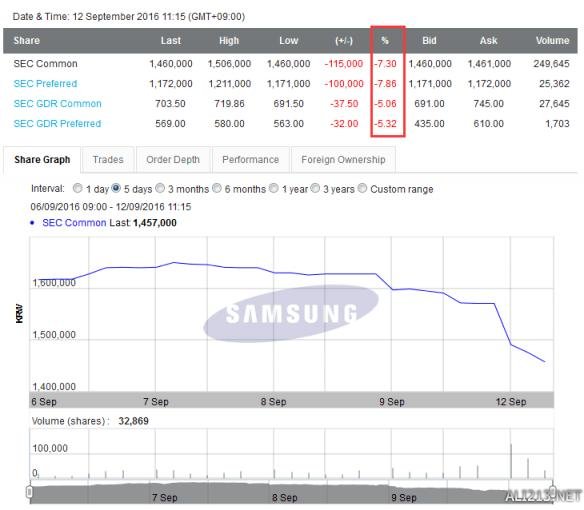 上月三星还表示,在旗下主力智能手机产品Galaxy S7的销售业绩推动下,今年第二季度三星运营利润可能同比增长17.4%,为两年多来最高增长水平。今年以来三星股价涨约30%,Note 7发布后,三星股价收创史上最高记录,并曾一度成为市值第三高的亚洲科技企业。但在出现电池风波之后,以往的对三星手机的乐观预期出现了逆转。